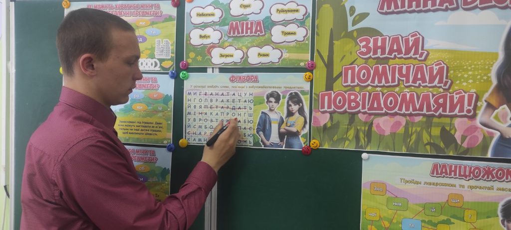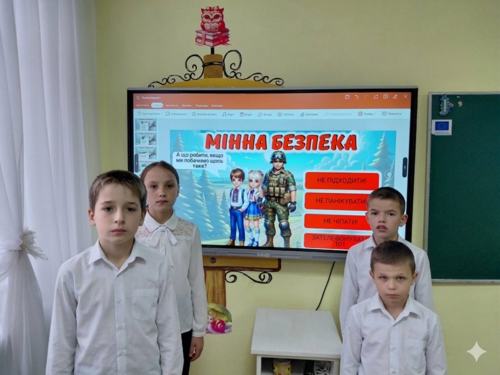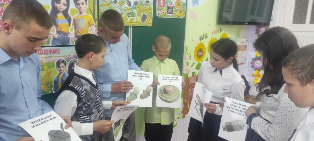 Під час заходів учні переглянули навчальні відеоматеріали про види мін та небезпечні ситуації, в яких їх можна зустріти.