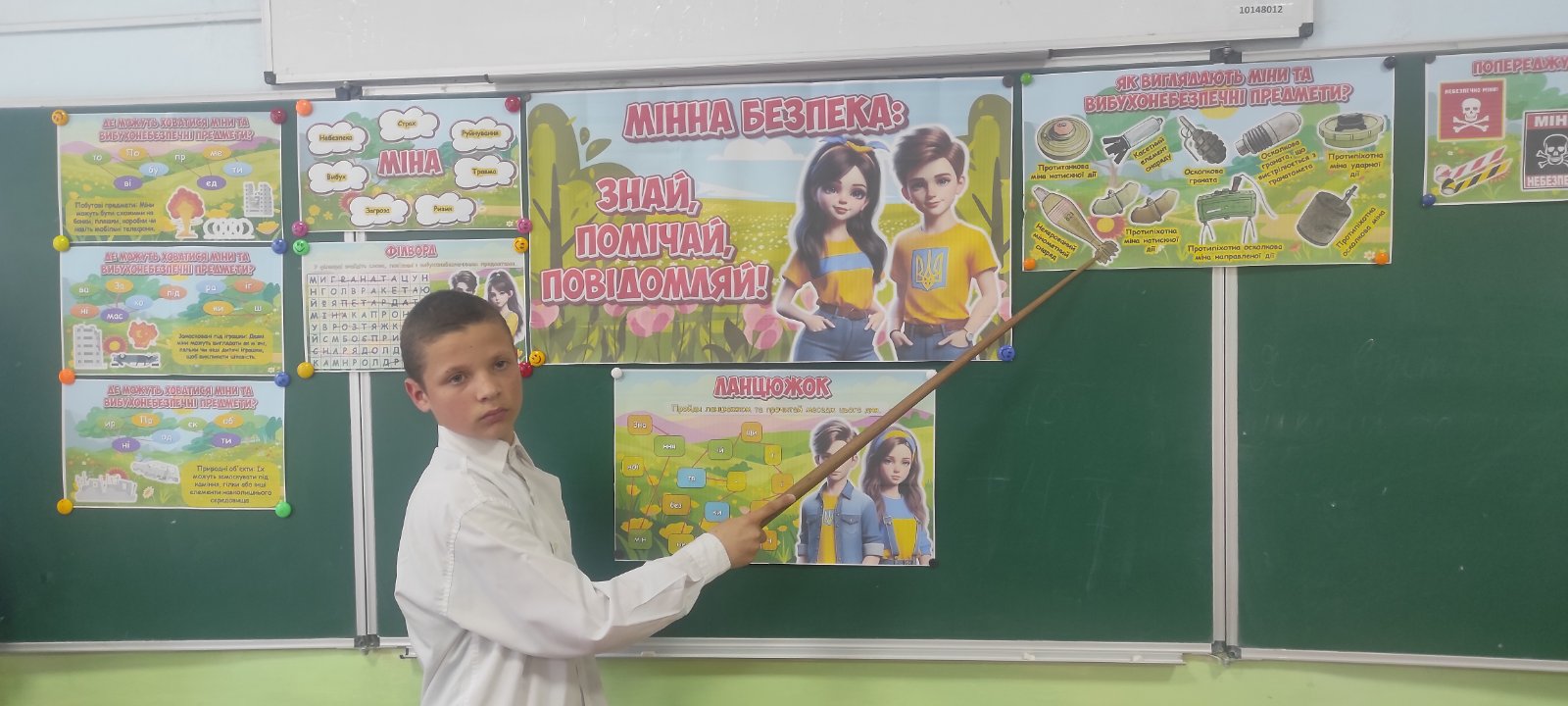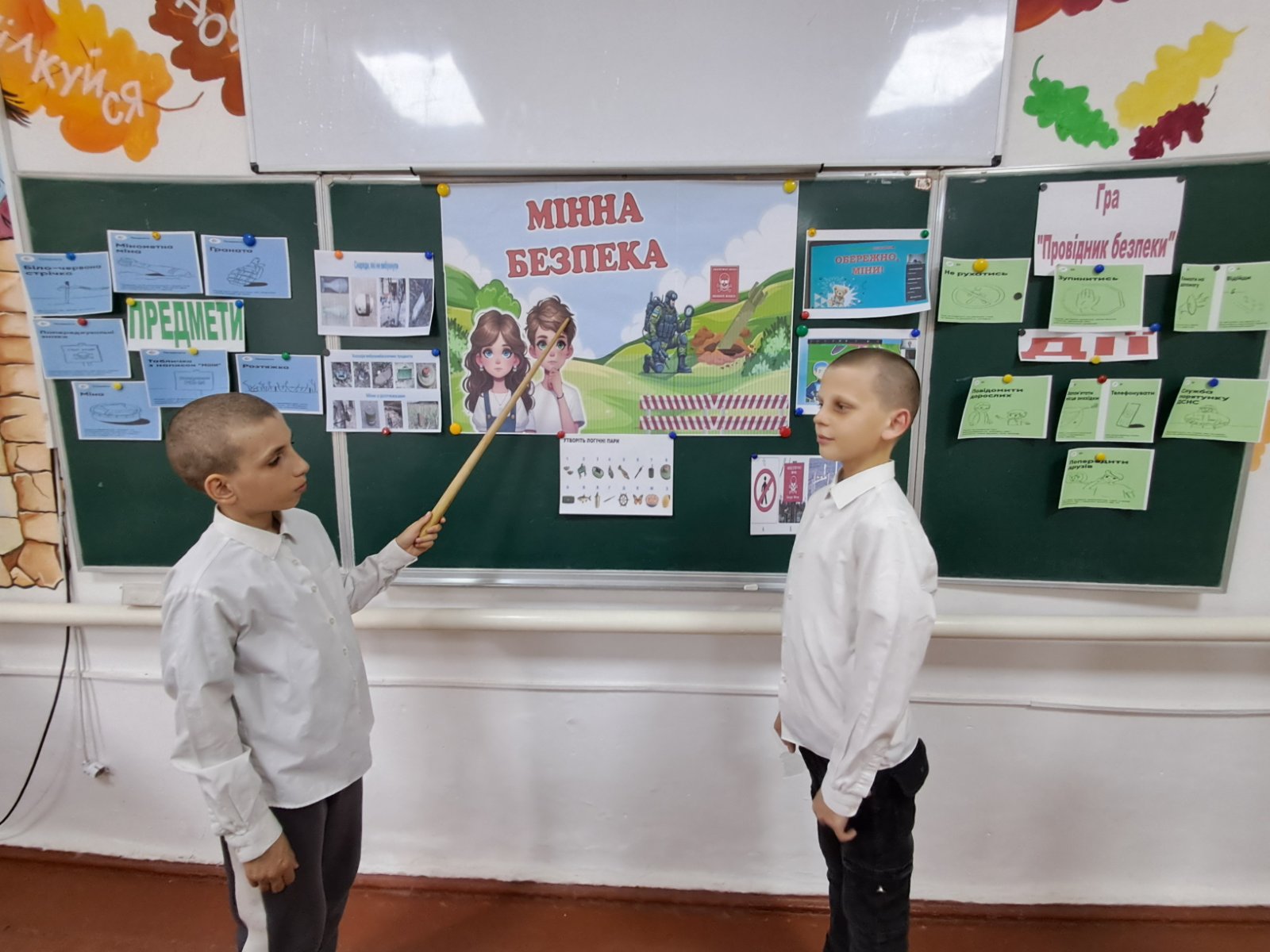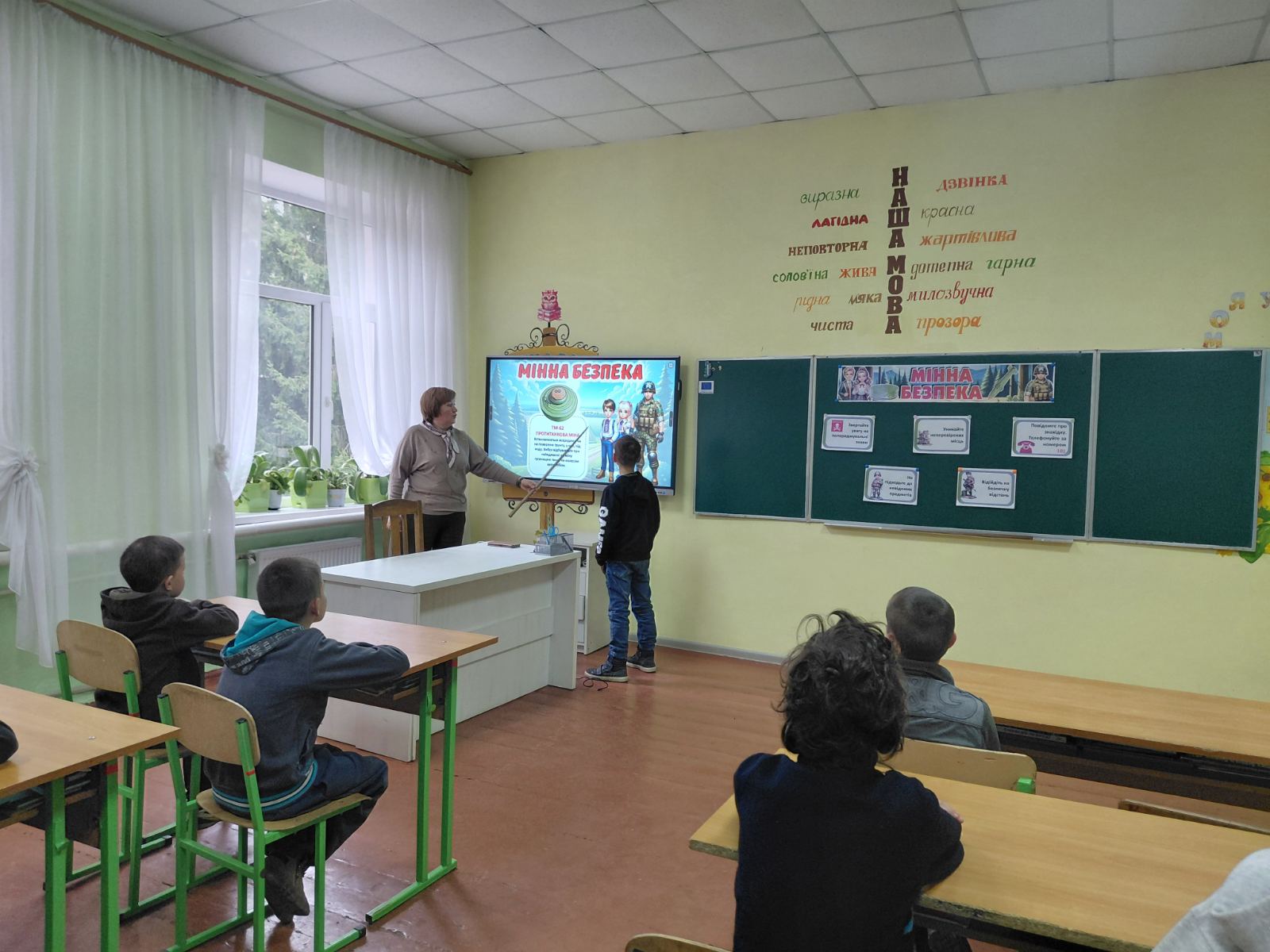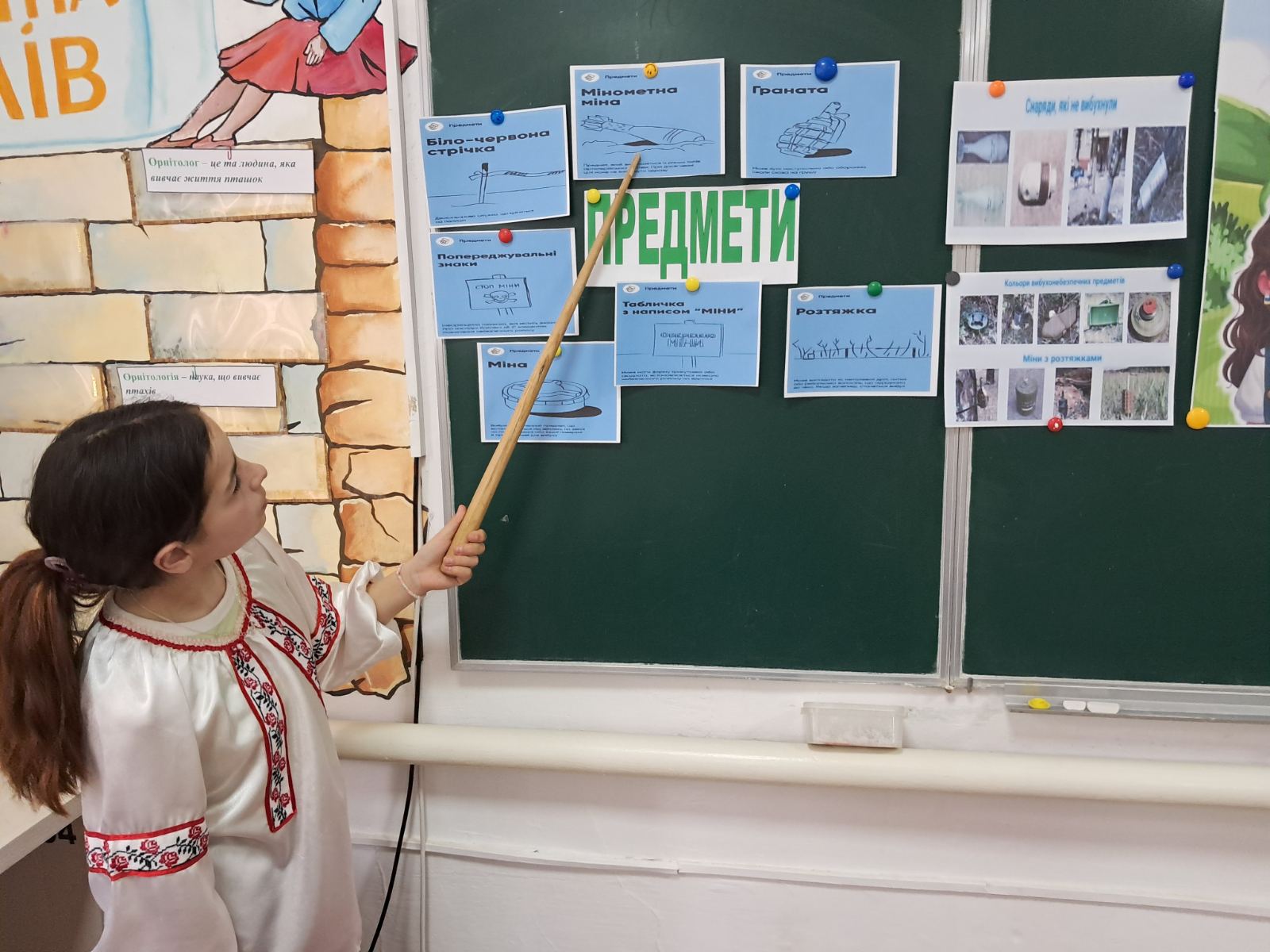 Під час заходів учні переглянули навчальні відеоматеріали про види мін та небезпечні ситуації, в яких їх можна зустріти.