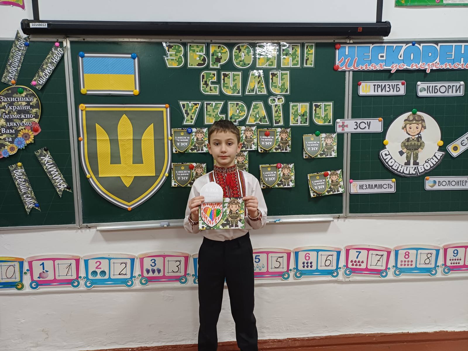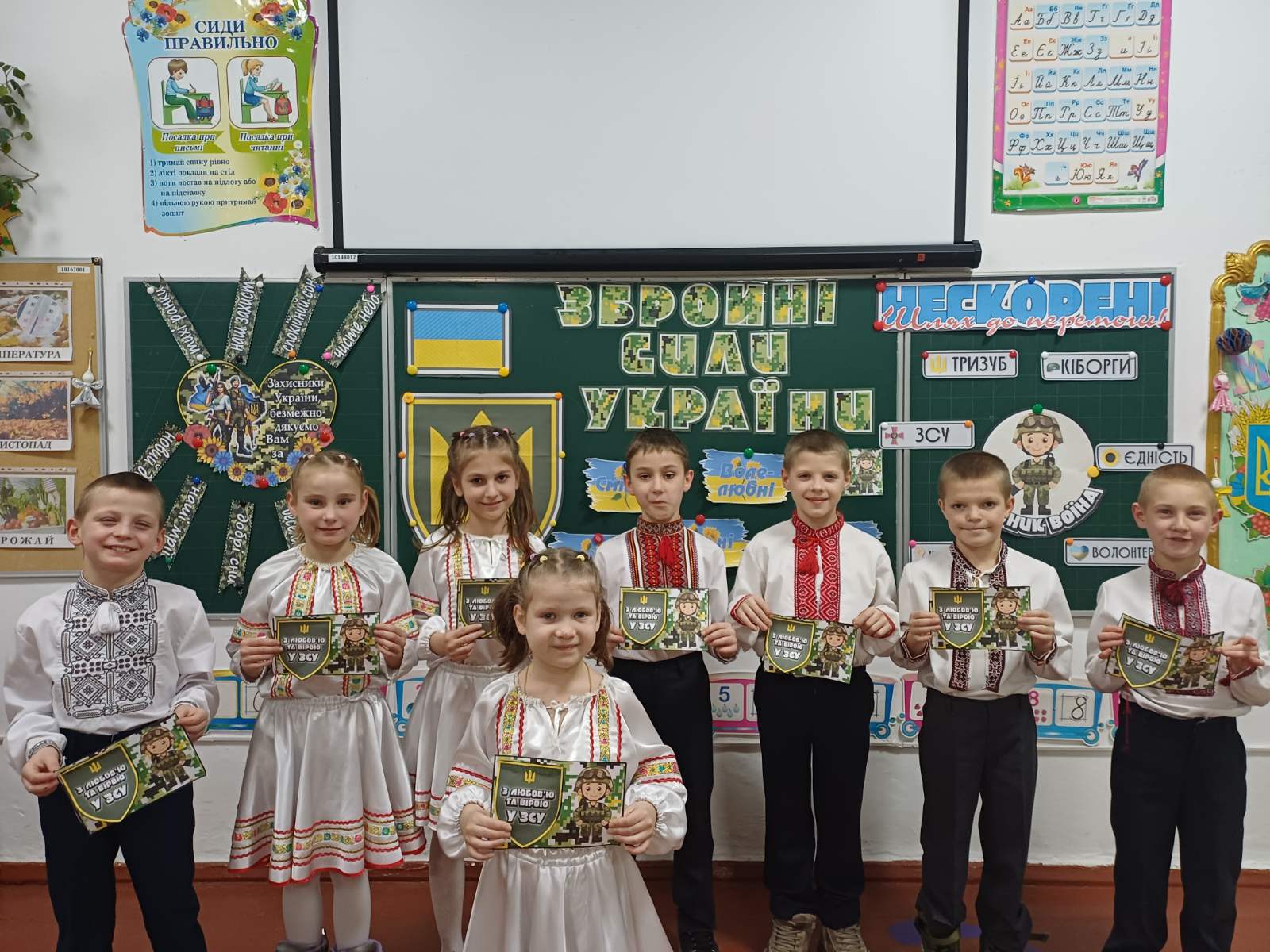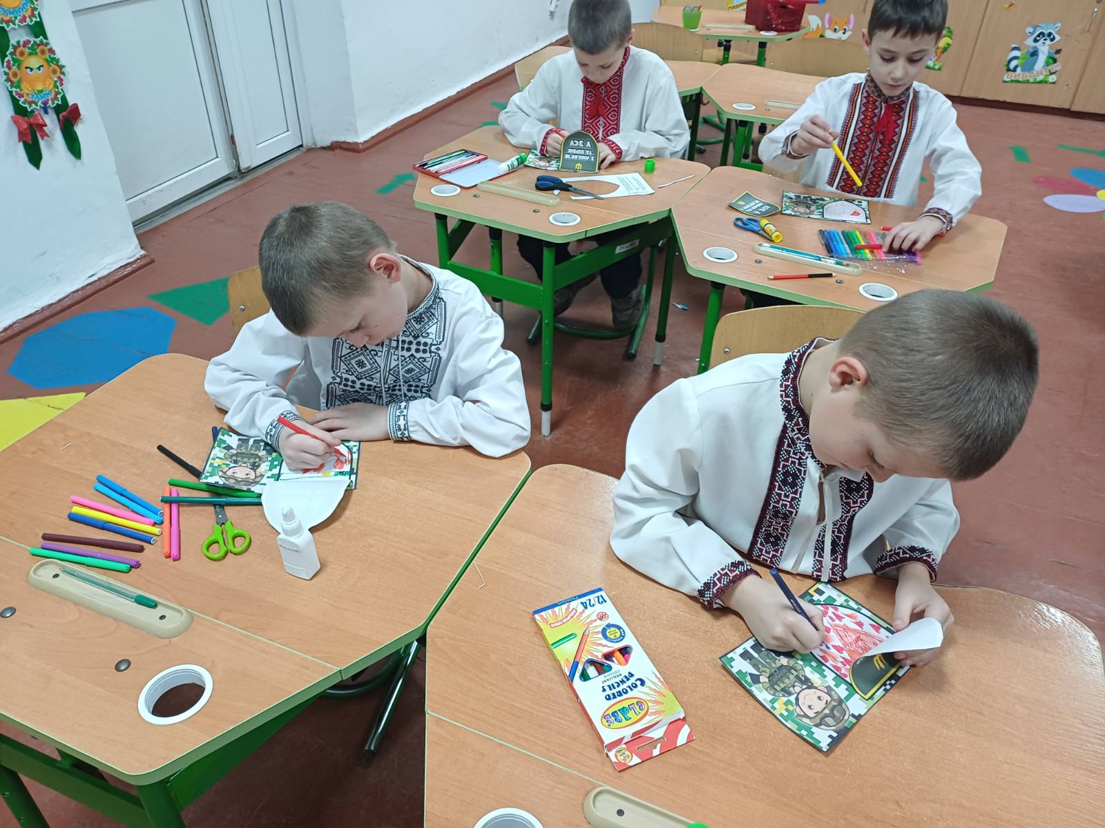Педагоги підготували виховні бесіди про мужність, звитягу та патріотизм, акцентуючи увагу учнів на важливості підтримки армії та усвідомленні свого громадянського обов’язку. Вихованці школи взяли участь у творчих майстернях, де виготовляли листівки-подяки для наших захисників, малювали патріотичні символи та писали побажання миру й перемоги.
